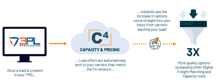 C4’s DFM integration with BrokerWare is designed for staging capacity right to your inbox to catch a wider net of carriers. As loads are created in BrokerWare, C4 automatically sends email offers to carriers that match that lane, instantly increasing the number of options per load.